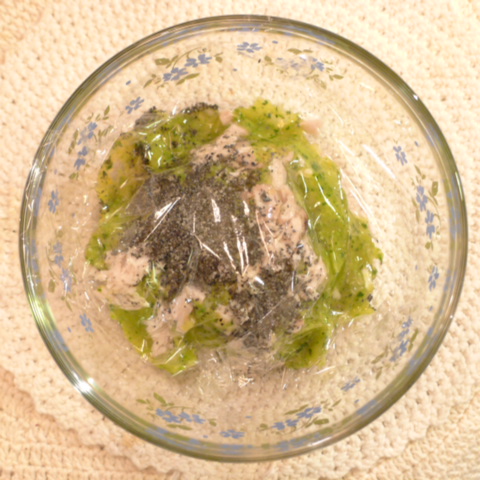 【夕ご飯】ぶり(北海道)8.5g 芋15g 南瓜12g りんご(秋映)30g きゃべつ6g ブロッコリ5g 小松菜5g おくら5g 舞茸5g 亜麻仁油0.3g 黒ごま1.5g ebi1T bio1g EsC0.5g 雪誉納豆3g ブルーベリー6.5g 麦茶70g ebi1T bio1g EsterC0.5g Zn1/8T