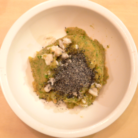 さわら(島根)8g 芋15g 南瓜12g トマト35g きゃべつ5g ブロッコリ6g 小松菜6g おくら5g 舞茸6g 黒ごま1.8g 黒豆納豆3.1g ブルーベリー5.5g 六条麦茶90g ebi1T bio1g EsterC0.5g