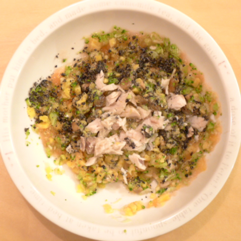【夕ご飯】ぶり(北海道天然)7 納豆2.8 安納芋10 キャベツ5 ブロッコリ5 トマト20 亜麻仁油0.5 黒ごま2 小岩井10g ebi1T bio2/3g Ca0.2g Zn1/8T 湯90cc