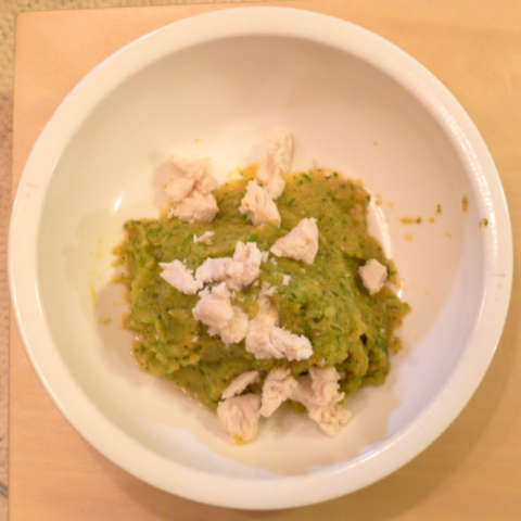 ささみ8.5g 芋15g 南瓜12g トマト30g きゃべつ7g ブロッコリ5g 小松菜5g おくら5g 亜麻仁油0.5g ebi1T bio1.2g EsterC0.4g 六条麦茶80g ブルーベリー5g 黒豆納豆2g