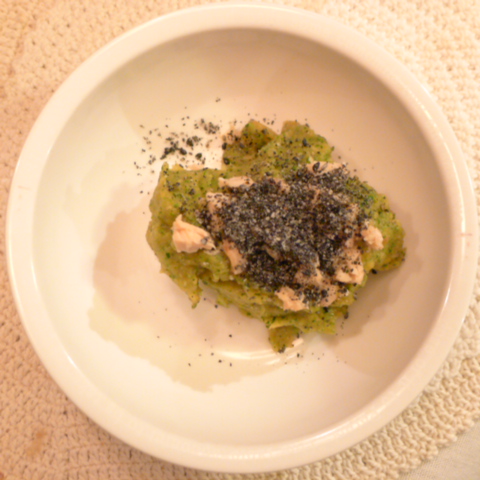 秋鮭(北海道)8.5g 芋15g 南瓜12g トマト35g きゃべつ5g ブロッコリ6g 小松菜6g おくら5g 舞茸5g 黒ごま1.5g ebi1T bio1g EsterC0.4g 黒豆納豆3g ブルーベリー8g 六条麦茶100g