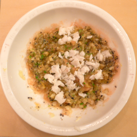 【朝ご飯】さわら(石川)7.5g 納豆2.8g 坂出金時10g キャベツ5g ブロッコリ芽3.5g 南瓜5g トマト35g 黒ごま1.5g 小岩井10g 湯70cc ebi1T bio2/3g VC0.1g Ca0.1g
