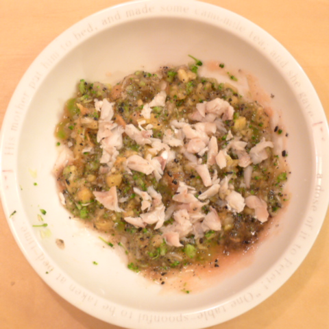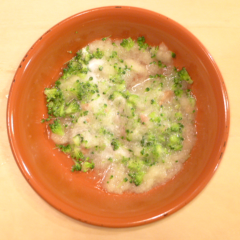 【早朝おやつ】りんご25g ブロッコリ4.5g 納豆2.1g VC0.05g 湯10cc