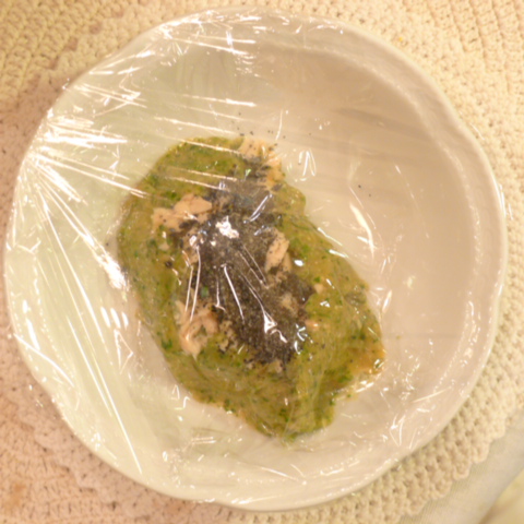【夕ご飯】秋鮭(北海道)8.5g 芋15g 南瓜12g トマト25g きゃべつ5g ブロッコリ5g 小松菜5g おくら5g 舞茸3.5g 黒ごま1.5g 亜麻仁油0.3g ebi1T bio1.3g EsterC0.4g 黒豆納豆3.5g ブルーベリー7g 六条麦茶80g