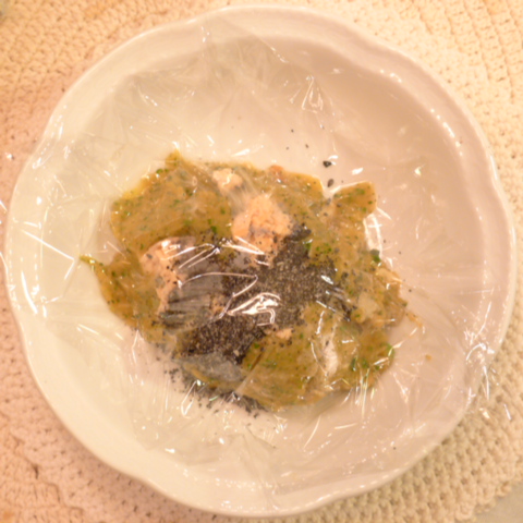 秋鮭(北海道)8.2g 芋15g 南瓜12g トマト30g きゃべつ5g ブロッコリ5g 小松菜5g おくら5g 舞茸3.5g 黒ごま1.5g 亜麻仁油0.3g ebi1T bio1.3g EsterC0.4g 黒豆納豆2g ブルーベリー3.5g 六条麦茶50g