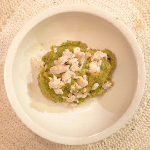 ささみ8.5g 安納芋15g 南瓜(鹿児島)12g トマト37g きゃべつ5g ブロッコリ6g 小松菜5g おくら6g 舞茸5g 亜麻仁油0.4g ebi1T bio1.5g EsterC0.4g cilantro1g ブルーベリー8g 黒豆納豆3.5g 六条麦茶75g