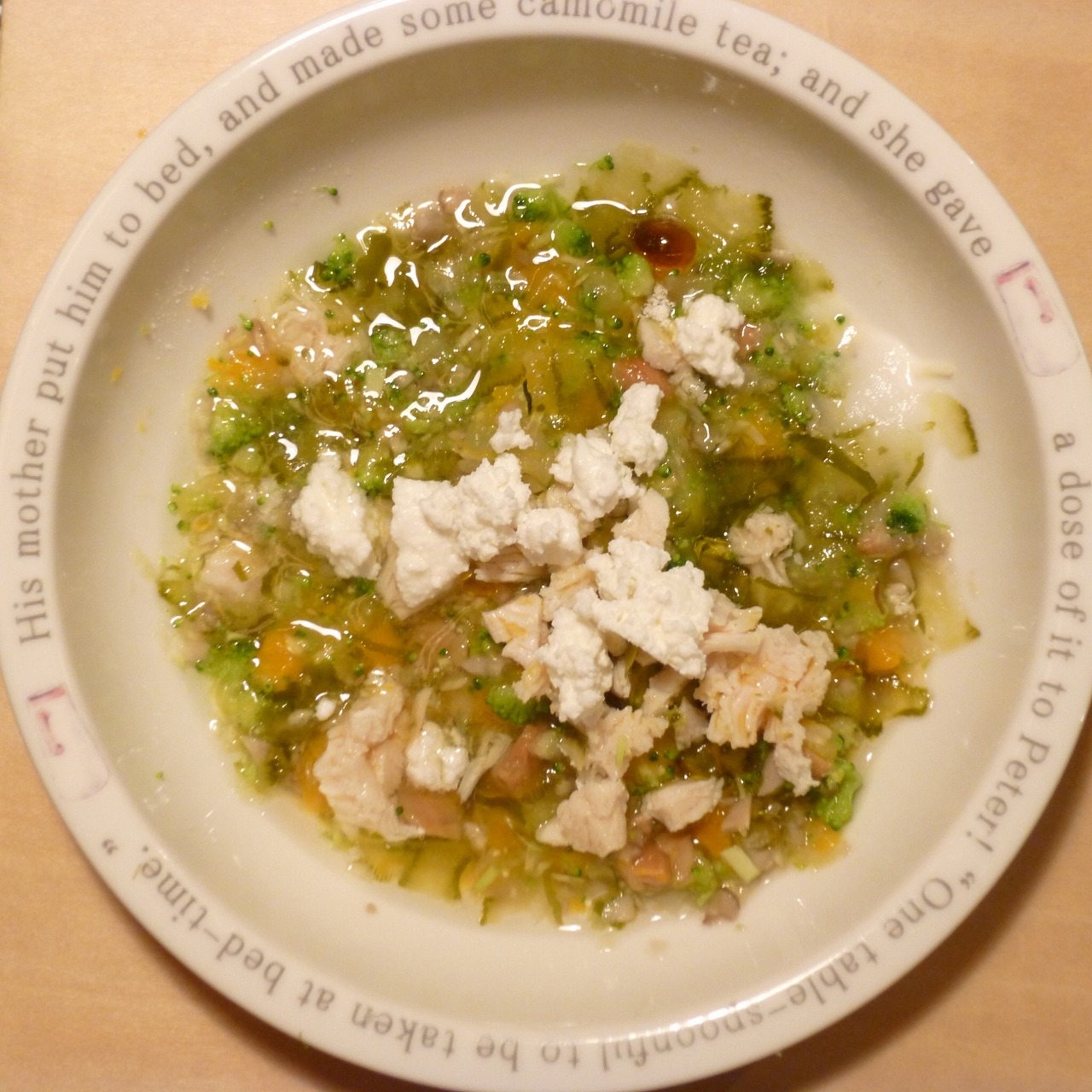 ささみ6g 納豆3.5g さつま芋15g きゃべつ5g ブロッコリ5g 舞茸5g 南瓜9g 昆布0.5g 亜麻仁油0.2g カッテージ5g 小岩井20g ebi1T bio1g VC0.2g Ca0.15g Zn1/10T のこぎりやし1ヶ