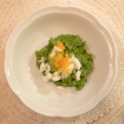 【夕ご飯】ばう玉子(渚おうはん)白身8g +黄身4g 芋16g 舞茸5g トマト23g きゃべつ5g ブロッコリ6g 小松菜5g 寒縮ほうれん草5g スナップえんどう5g 亜麻仁油0.3g ebi2T bio1.5g Es-C0.5g Cilantro0.8g ブルーベリー6g 黒豆納豆3g 黒千石きな粉1.5g 湯60g