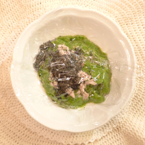 【夕ご飯】ぶり(長崎)9g 芋15g トマト32g きゃべつ5g ブロッコリ5g 小松菜5g 寒縮ほうれん草5g スナップえんどう5g 黒ごま1.5g 亜麻仁油0.3g ebi2T bio1.5g Es-C0.5g Cilantro0.8g ブルーベリー6g 黒豆納豆3.5g 黒千石きな粉1.5g 湯80g