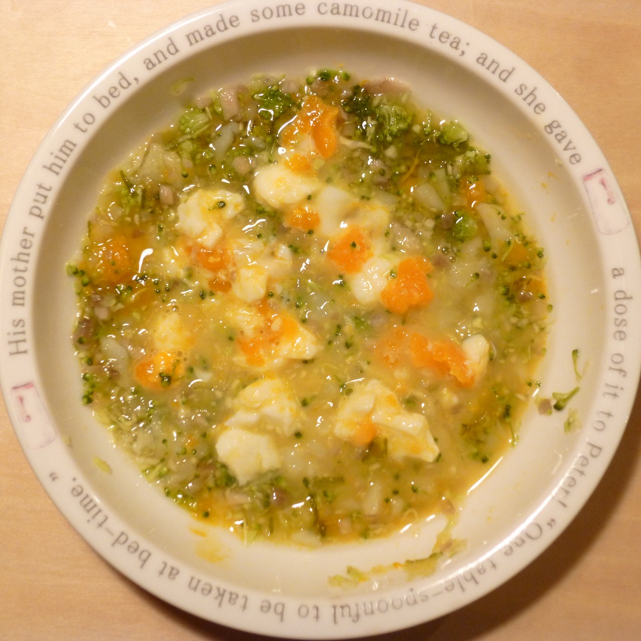 半熟卵12g じゃが芋15g きゃべつ6g ブロッコリ6g もやし6g 南瓜10g 昆布0.1g 小岩井20g ebi1T bio1g VC0.2g