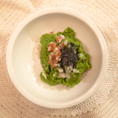 たら(北海道)8g 芋16g 南瓜(沖縄)11g トマト30g きゃべつ5g ブロッコリ5g 小松菜5g 寒縮ほうれん草5g スナップえんどう(愛知)5g 黒ごま1g 亜麻仁油0.3g ebi2T bio1.5g Es-C0.5g Cilantro0.8g 黒豆納豆1g 干柿3g 湯30g