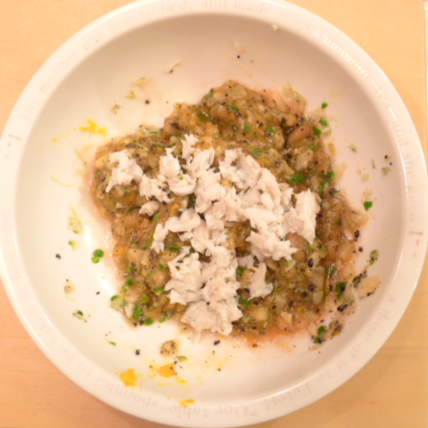 さわら(石川)8g 納豆2.8g 坂出金時10g キャベツ5g ブロッコリ5g 南瓜6g トマト30g 黒ごま1.5g ブルーベリー10g 小岩井10g 湯90cc ebi1T bio2/3g Ca0.1g Zn1/8T