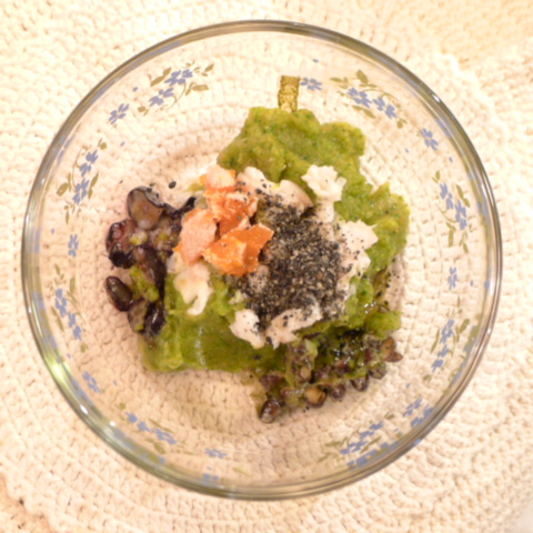 【夕ご飯】子持ち赤かれい(鳥取)8g 坂出金時16g 南瓜(沖縄)12g トマト30g きゃべつ5g ブロッコリ6g ほうれん草5g 黒ごま1g 亜麻仁油0.3g ebi2T bio1.5g Es-C0.5g Cilantro0.8g ブルーベリー5g 黒豆納豆3g 市田柿3g 俊粉1g 湯50g