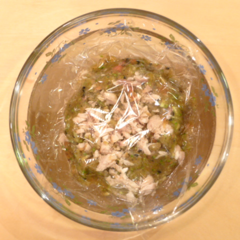 ぶり(石川)7g 黒豆納豆3g 安納芋11g 春きゃべつ6g ブロッコリ6g 舞茸5g 南瓜(長野)10g トマト25g 黒ごま1.5g ebi1T bio1g EsC0.3g Zn1/8T cilantro1cc ブルーベリー7g 湯95cc りんご3g
