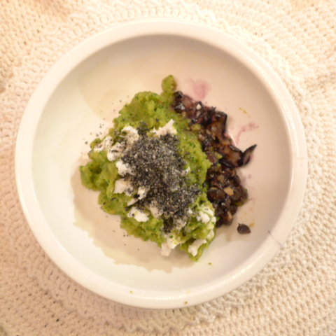たい(愛媛養殖)8g 芋15g 南瓜11g トマト20g 春きゃべつ5g ブロッコリ5g 小松菜5g スナップえんどう5g 舞茸出汁2g 黒ごま1.5g ブルーベリー5g 黒豆納豆3g ebi1T bio1.5g EsC0.5g Cilantro1g 俊粉1g 湯80g