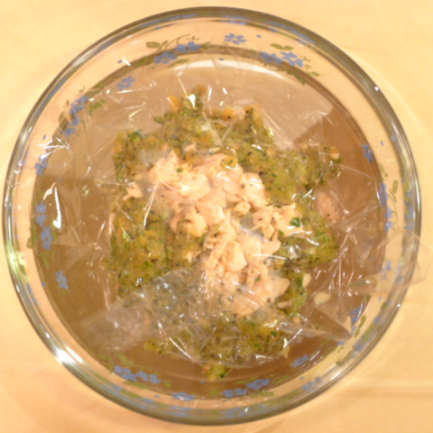 【夕ご飯】時鮭(北海道)8g 芋12g きゃべつ7g ブロッコリ6g 小松菜5g 南瓜12gトマト30g 黒ごま2.5g ebi1T bio1g EsC0.3g cilantro1cc Zn1/8T 湯