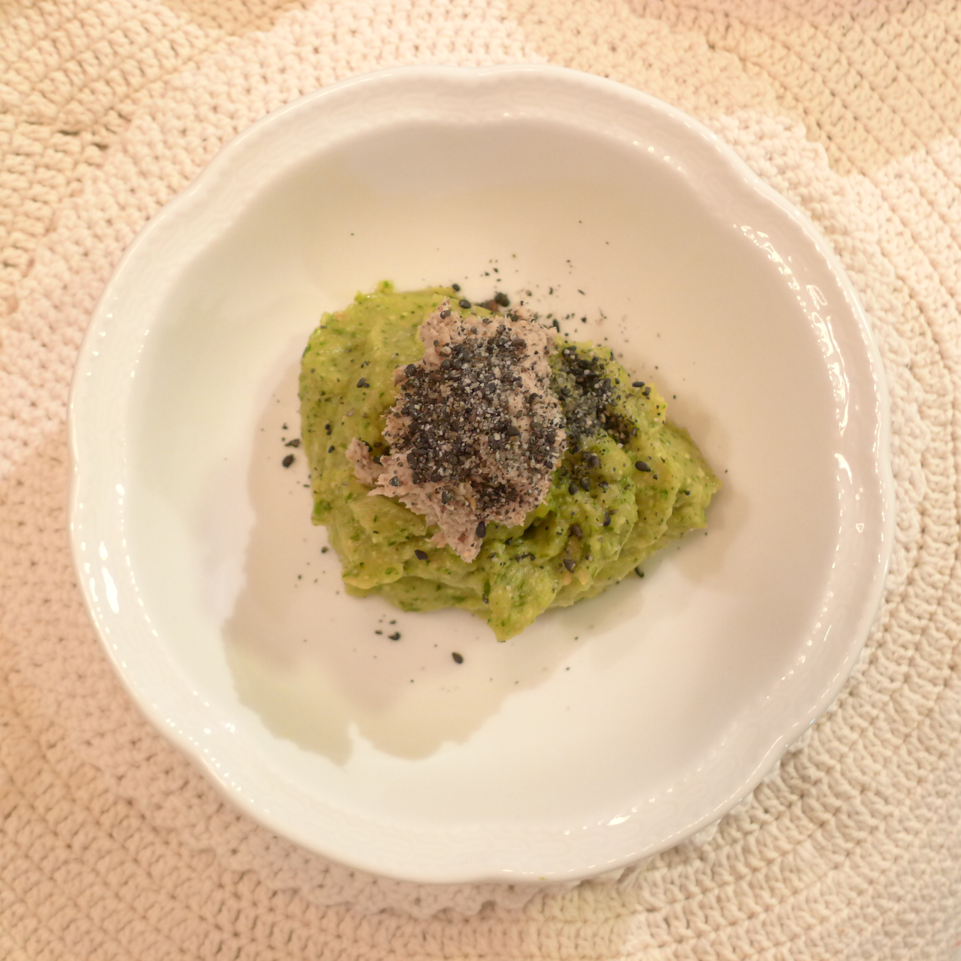 たい(長崎)8g 黒豆納豆3.2g 芋15g 南瓜12g トマト21g 舞茸5g 春きゃべつ5g ブロッコリ芽5g 小松菜4.5g スナップえんどう5g おくら5g もやし5g 黒ごま0.5g ebi2T bio1.5g EsC0.4g Cilantro1g 俊粉1g 湯35g