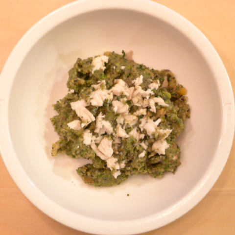 ささみ7g 雪誉納豆2.6g 鳴門金時12g きゃべつ6g ブロッコリ5g 小松菜5g 明日葉3g 舞茸6g 南瓜11gトマト26g 黒ごま4g ブルーベリー8g ebi1T bio1g EsC0.3g cilantro1cc 湯85cc