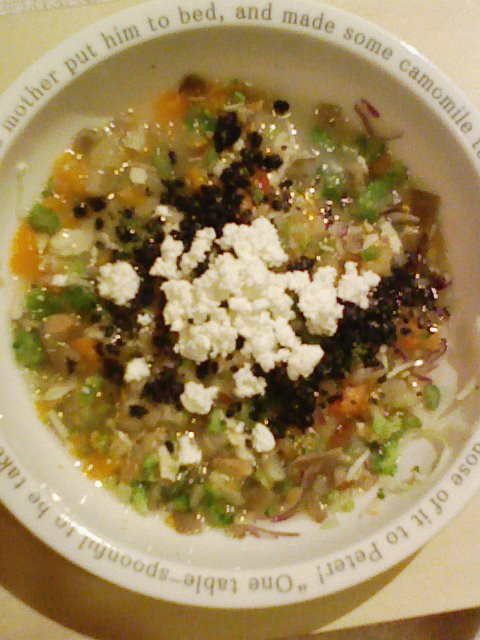 ささみ8g 隠元5g 人参8g ブロッコリ5g キャベツ5g 舞茸8g さつまいも12g プチトマト10g カテージ3g 黒ごま2g 小岩井20g 湯 ebios1 bio2g Zn1/10 Ca0.2g