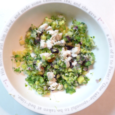 ささみ6g 納豆2.1g さつま芋15g ブルーベリー6g きゃべつ5g ブロッコリ5g もやし5g 小松菜5g 小岩井10g 亜麻仁油1g 湯80cc ebi1T bio2/3g VC0.2g Ca0.2g Zn1/8T のこぎりやし1cap