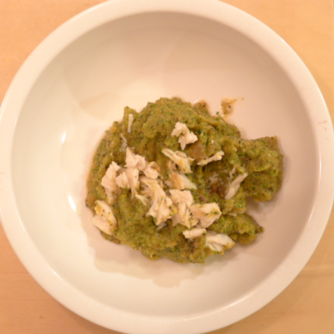 ささみ7g 雪誉納豆3g 芋13g きゃべつ6g ブロッコリ6g 小松菜5g 南瓜12g トマト(長野)30g ブルーベリー6g ebi1T bio1g EsC0.3g cilantro1cc 湯80cc