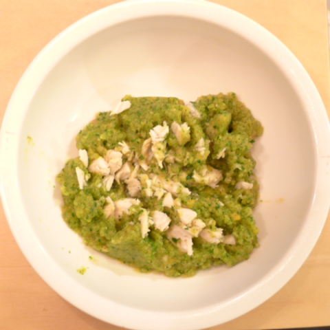 ささみ7g 納豆3.3g 芋13g きゃべつ7g ブロッコリ7g 小松菜5g 南瓜12g トマト(北海道)30g 亜麻仁油0.5g ブルーベリー5.5g ebi1T bio1g EsC0.3g cilantro1cc 湯80cc