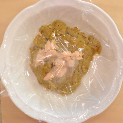 【遅い夕ご飯】秋鮭(北海道)8g 黒豆納豆3.1g 芋15g きゃべつ5g ブロッコリ6g オクラ6g 南瓜12g トマト(美瑛)35g 黒ごま2g ブルーベリー7g bi1T bio1g plmC0.3g Ca0.2g Cilantro1cc 六条麦茶50cc