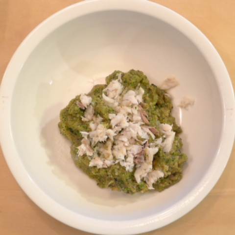 【早朝のおやつ】昨日の野菜20g 六条麦茶20cc 芋5g 南瓜5g