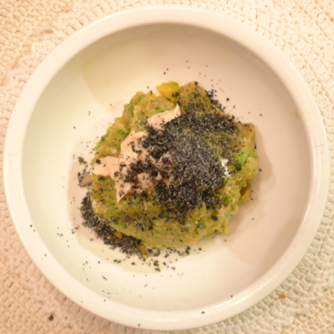 【朝ご飯】白鮭(北海道)8g 芋15g 南瓜10g トマト31g きゃべつ5g ブロッコリ芽5g 小松菜5g おくら4g 黒ごま1.5g ebi1T bio1g plmC0.5g Ca0.2g 雪誉納豆3.2g ブルーベリー7.0g 六条麦茶65cc