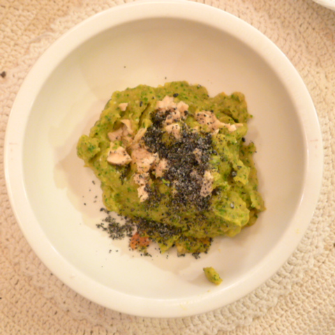 【朝ご飯】白鮭(北海道)8g 芋15g 南瓜11g トマト24g きゃべつ5g ブロッコリ5g 小松菜5g おくら3.5g 舞茸5g ebi1T bio1g plmC0.5g Ca0.2g 雪誉納豆3g ブルーベリー6g 六条麦茶60cc