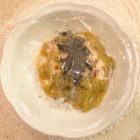 【夕ご飯】白鮭(北海道)8g 芋15g 南瓜10g トマト21g きゃべつ5g ブロッコリ5g もやし5g おくら(鹿児島)5g 舞茸5g ebi1T bio1g plmC0.5g Ca0.2g 雪誉納豆2.8g ブルーベリー7g 六条麦茶60cc