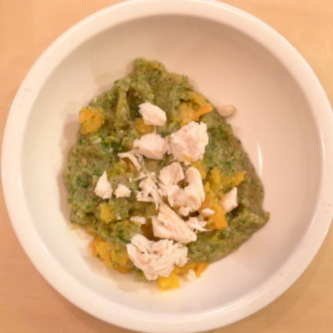 【夕ご飯】白鮭(北海道)8g 雪誉納豆3.5g 芋12g きゃべつ6g ブロッコリ6g 小松菜5g 舞茸5g 南瓜12g トマト(北海道)33g ブルーベリー7g 六条麦茶60cc bi1T bio1g パルミチンC0.3g Ca0.1g Cilantro1cc