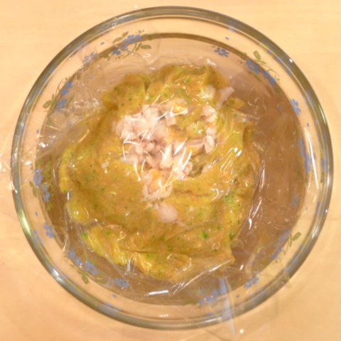 【夜食】納豆2.2g ブルーベリー7.2g きゃべつ2g ブロッコリ2g 湯60cc 生麩5g