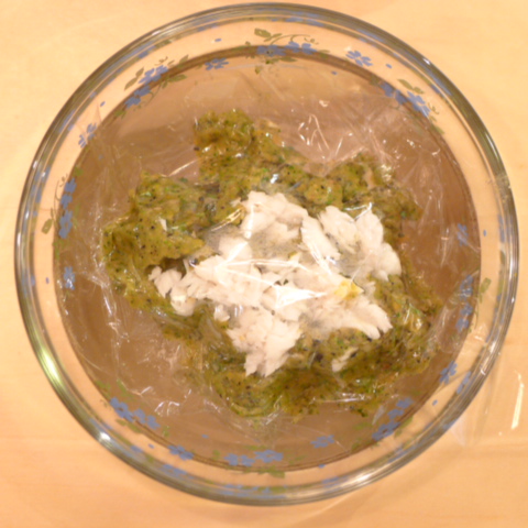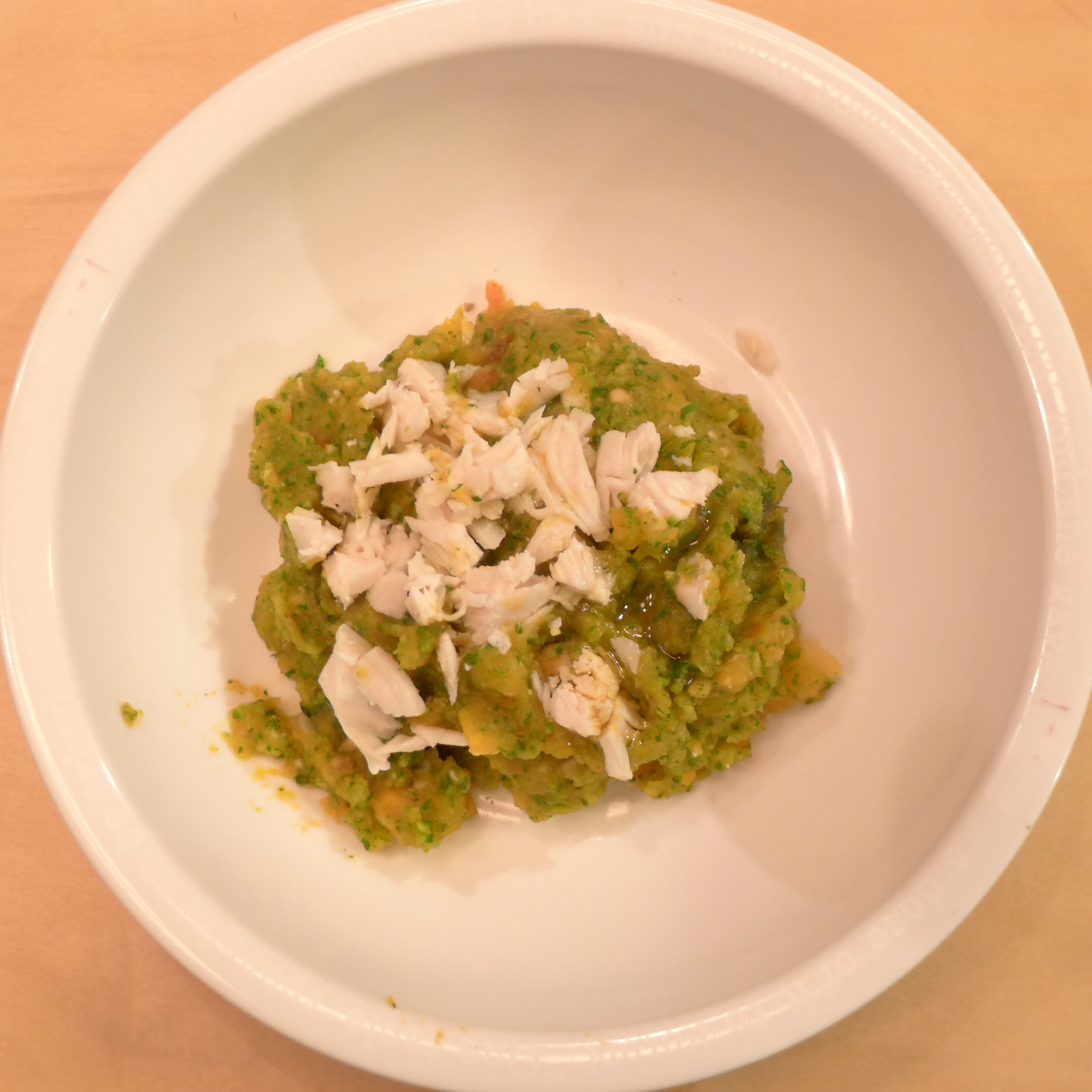 【夕ご飯】卵(白身5g 黄身3g)8g 芋12g 納豆3g きゃべつ5g ブロッコリ5g 小松菜5g 舞茸5g 南瓜12g トマト(かずさんち)19g ブルーベリー5.5g 黒ごま2.5g ebi1T bio1g EsC0.3g cilantro1cc Zn1/8T湯90cc