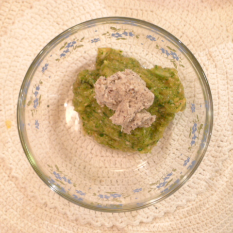 鯵(長崎)8.5g 黒豆納豆2.6g 芋15g 南瓜12g トマト31g きゃべつ6g ブロッコリ6g 小松菜5g おくら5g ebi2T bio1.5g EsterC0.25g Cilantro0.8g 俊粉1g 黒ごま1g 小岩井3g 湯80g