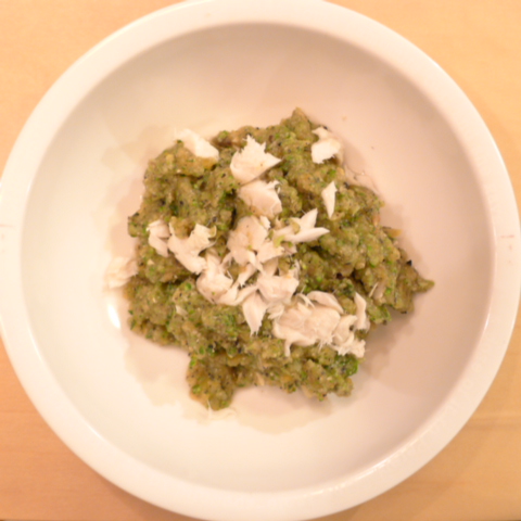 さわら(石川)7g 雪誉納豆3g 紅はるか13g 白アスパラガス(富良野)5g きゃべつ5g ブロッコリ5g 小松菜5g 南瓜10gトマト26g ブルーベリー6g 黒ごま2g ebi1T bio1g EsC0.3g cilantro1cc Zn1/8T 湯75cc