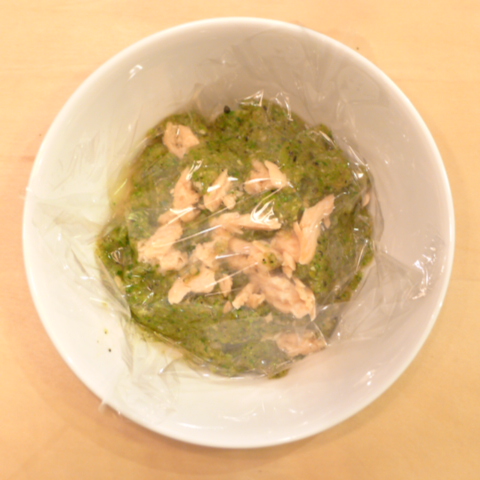 時鮭(北海道天然)7g 雪誉納豆2.5g 鳴門金時11g 香菜1g 春きゃべつ6g ブロッコリ5g 小松菜5g 南瓜11gトマト25g 黒ごま2g ブルーベリー10g ebi1T bio1g EsC0.3g Zn1/8T 湯90c