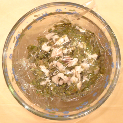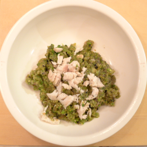 ぶり(長崎)7g 雪誉納豆3g 芋11g 春きゃべつ7g ブロッコリ8g 小松菜5g 舞茸5g 南瓜11gトマト20g 黒ごま3g ブルーベリー5g ebi1T bio1g EsC0.3g cilantro1cc Zn1/8T 湯80cc