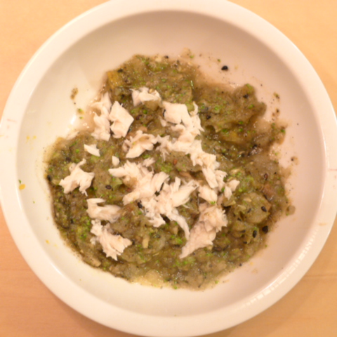 さごし(山口)7g 納豆3g 安納芋12g きゃべつ5g ブロッコリ6g 南瓜10g 舞茸3.5g えのき出汁2g トマト15g 黒ごま1.5g ebi1T bio1g EsC0.3g Zn1/8T 湯30cc
