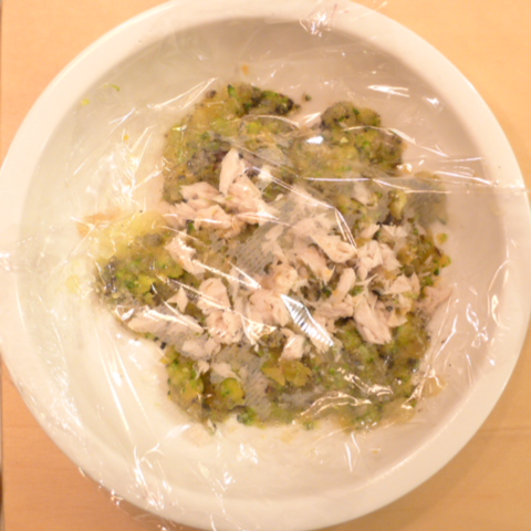 真鱈(北海道)7.5g 納豆3.5g 安納芋12g きゃべつ5g ブロッコリ6g 南瓜6g トマト17g 黒ごま1.5g ebi1T bio1g EsC0.3g Zn1/8T 小岩井5g 湯40cc