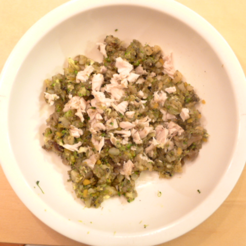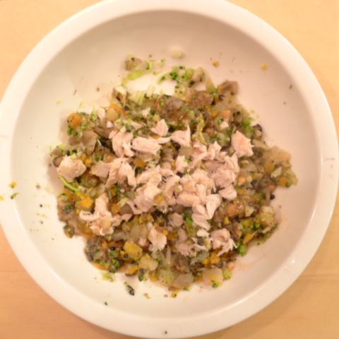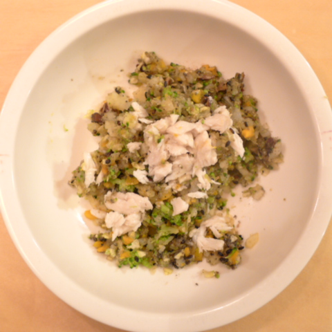 ぶり(長崎)7g 黒豆納豆2.5g 鳴門金時10g きゃべつ5g ブロッコリ5g 南瓜6g 舞茸5g トマト23g 黒ごま2g ebi1T bio2/3g EsC0.3g Zn1/8T 小岩井10g 湯100cc