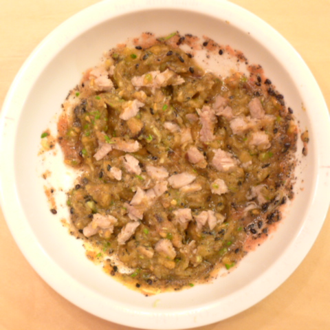 【夕ご飯】きはだまぐろ7g 黒豆納豆3g 安納芋10g きゃべつ5g ブロッコリ芽3g 南瓜(北海道)5g トマト25g 黒ごま1.5g ebi1T bio1g ester-c0.3g 小岩井10g 湯100cc