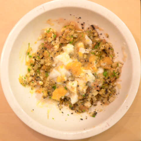 ぶり(京都)7.5g 黒豆納豆3g 紅東10g キャベツ5g ブロッコリ芽3.5g 南瓜6g トマト18g 黒ごま1.5g 小岩井10g 湯120cc ebi1T bio2/3g EsterC0.3g Ca0.1g 湯120cc