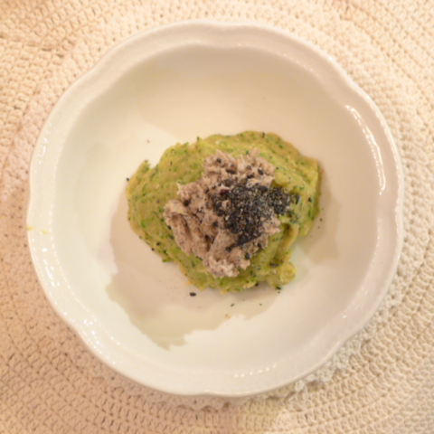 さごち(愛媛)8g 黒豆納豆3g 芋16g 南瓜12g トマト19g 春きゃべつ5g ブロッコリ5g 小松菜3.5g スナップえんどう5g おくら(いぶすき)5g 黒ごま1g ebi2T bio1.5g EsC0.4g Cilantro1g 俊粉1g 湯70g 追加でお野菜10g