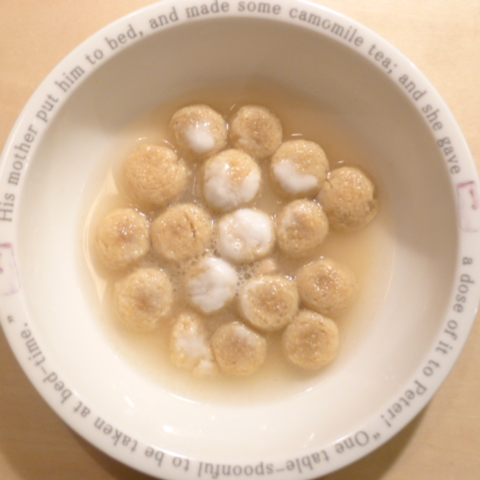 ぶり7g 豆腐10g 黒豆5.5g さつま芋10g きゃべつ6g ブロッコリ芽6g もやし6g 人参6g 昆布1g 黒ごま1.5g ダノン20g ebi1T bio3g VC0.2g Ca0.2g のこぎりやし1ヶ