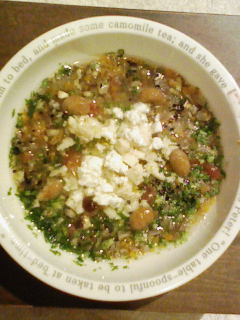 あじ8g 紫きゃべつ5g なす8g 人参8g 紫蘇1g 中トマト7g マッシュ茸7g 鳴門金時8g 昆布0.3g ひじき0.5g 黒ごま2.5g 湯100cc 小岩井20g ebi1T bio2g Vc0.2g Ca0.15g Zn1/10 のこぎりやし1T 鹿肉五膳1T 8.5割食べる。