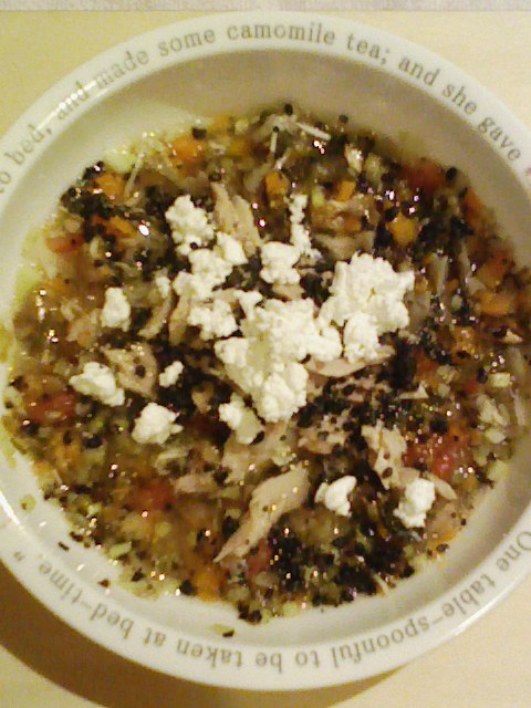 ささみ6.5g 納豆3.5g キャベツ5g なす8g 人参8g プチトマト10g 舞茸8g さつま芋8g 昆布0.3g ひじき1g 亜麻仁油1g 湯100cc カッテージ3g 小岩井20g ebi bio2g Vc0.2g Ca0.2g Zn1/10 のこぎりやし