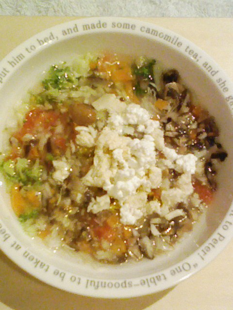 かつお8g 納豆3.5g キャベツ5g きゅうり8g なす10g 人参8g プチトマト20g マッシュルーム5g 舞茸6g さつま芋10g 昆布0.3g ひじき0.5g 黒ごま3g 湯100cc カッテージ3g 小岩井20g ebi bio2g Vc0.2g Ca0.2g Zn1/10 のこぎりやし