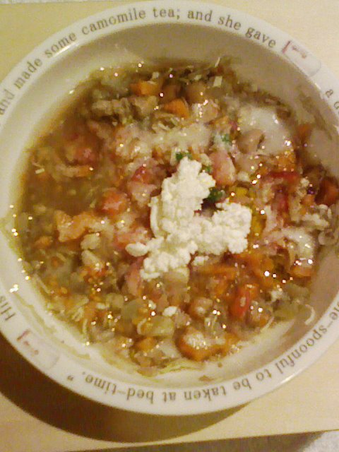 >ささみ7g 苺11g 明日葉0.2g キャベツ10g 人参15g 舞茸と人参の出汁25g プチトマト10g さつま芋15g カテージ3g 亜麻仁油1g 小岩井20g 湯 ebi1.5g bio Zn1/10 Ca0.2g