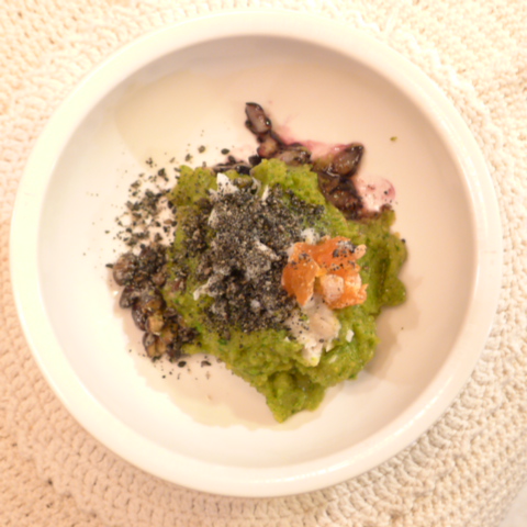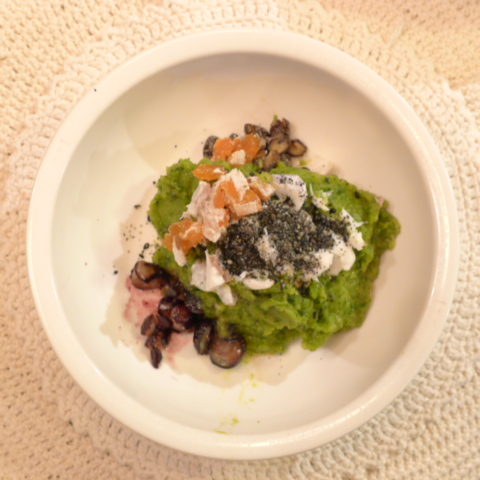 【夕ご飯】鯛(愛媛養殖)8.5g 芋16g 南瓜(沖縄)12g トマト25g きゃべつ6g ブロッコリ6g 小松菜5g ほうれん草5g スナップえんどう5g 黒ごま0.5g 亜麻仁油0.3g ebi2T bio1.5g Es-C0.5g Cilantro0.8g ブルーベリー5g 黒豆納豆2.2g 市田柿3g 俊粉1g 湯50g